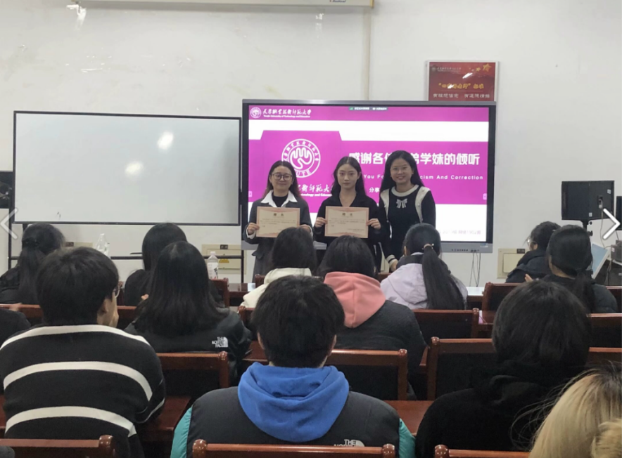 在最后的提问环节中,三位学姐鼓励同学们在大学期间积极参与讲课比赛等各种活动,珍惜大学时光,积极寻找机会锻炼自己。