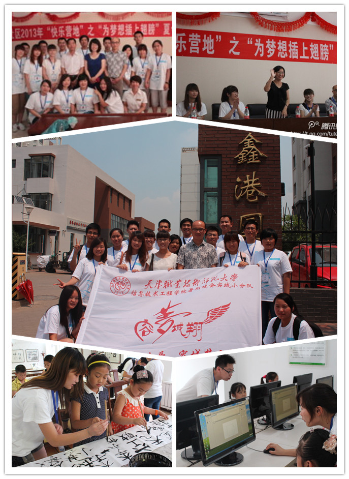 7月15日至21日,6165cc金沙总站检测中心“容梦城翔”社会实践小分队一行16人,赴天津市津南区双港园社区与社区居民联合开展“为梦想插上翅膀”暑期“快乐营地”活动,为当地学生进行计算机知识普及、自护教育、书法绘画指导以及综合素质拓展等,取得实效,受到天津市电视台、津南区电视台、河西政务网等多家媒体的相继报导。