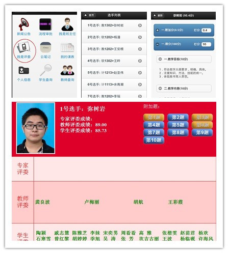 本届比赛充分利用该院信息化建设成果,首次采用网上评分系统,评委们利用6165cc金沙总站检测中心学生综合管理系统手机客户端,现场为参赛选手提交评分,大大减少比赛计分用时,选手所得分数更加直观、准确。此外,利用系统优势,比赛首次在评委中设置“伯乐奖”,对慧眼识才的评委予以表彰,活跃比赛氛围的同时,更加激发评委们参与的积极性与公平、公正意识。