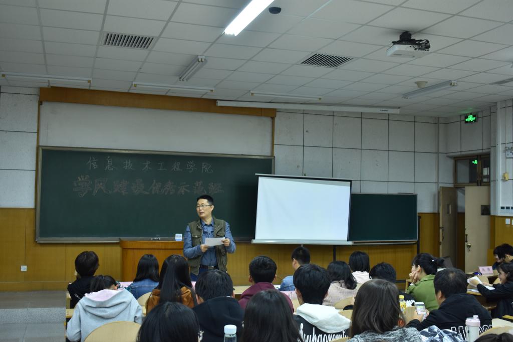 为了进一步提高班级凝聚力,建设良好的学风,6165cc金沙总站检测中心、软件工程学院于10月18日傍晚在阶教103开展了学风建设优秀示范班评选活动,院党委副书记兼副院长蔡振山、学院全体辅导员和9个参选班级同学代表出席了本次活动。