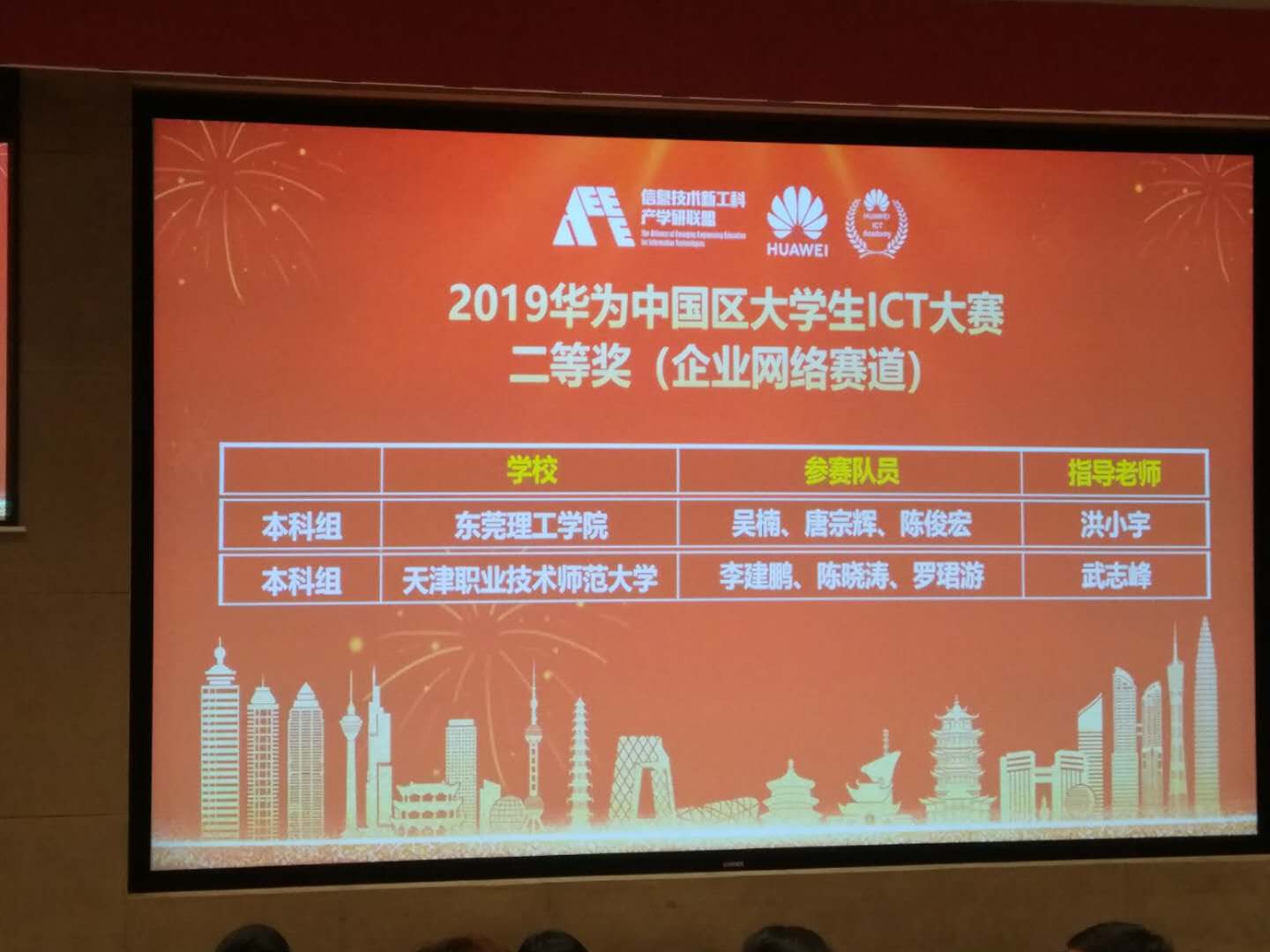 5月23日,由华为生态大学主办的2019华为中国区大学生ICT大赛决赛颁奖典礼于深圳华为总部圆满落幕。6165cc金沙总站检测中心李建鹏、陈晓涛、罗珺游三位同学获得全国总决赛企业网络赛道项目本科组二等奖。